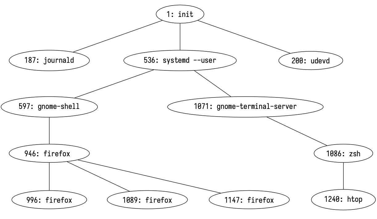 Below is a tree hierarchical view of processes’ relationships.